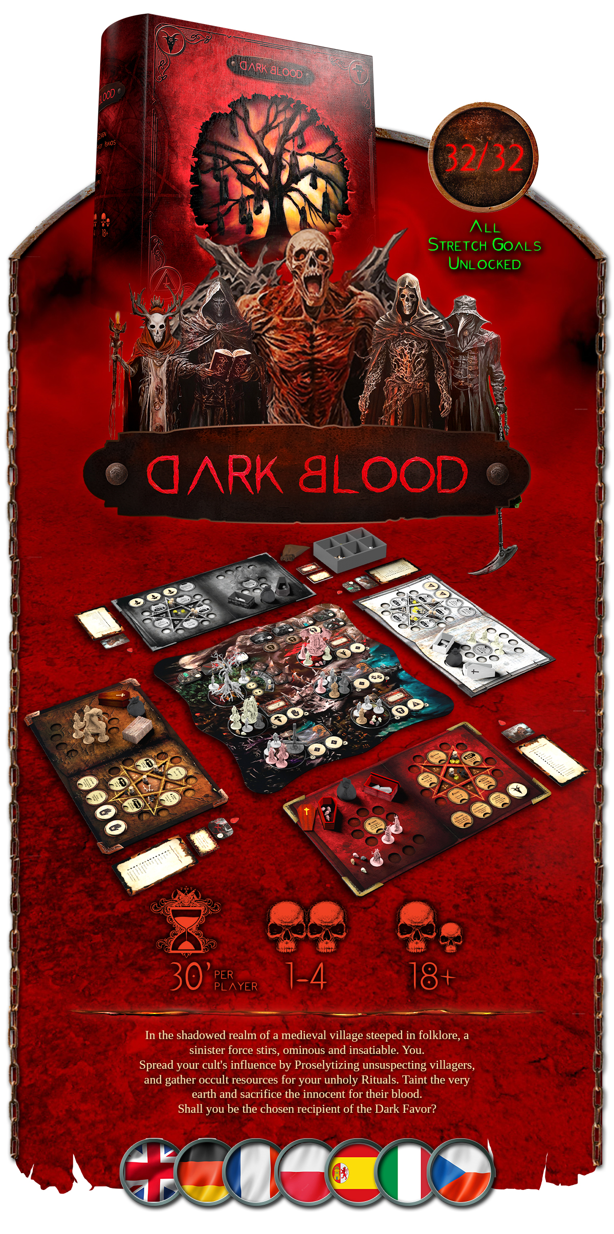 An immersive thematic experience! with over 40 miniatures and numerous deluxe components!